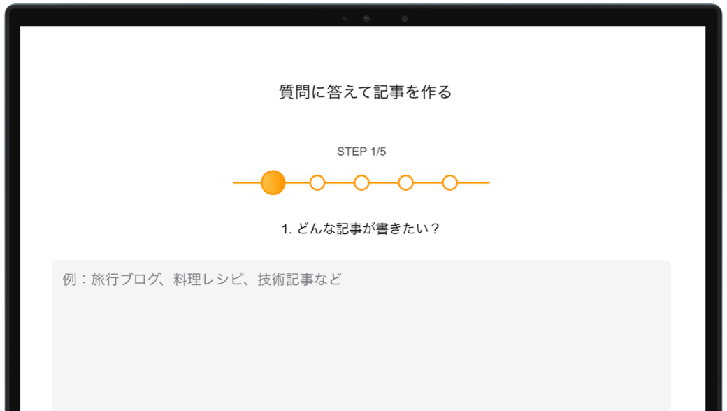 5段階(記事の内容・読者層・記事の目的・文字・文字数)に分けてプロンプトが設定可能です。 主婦向け・若者向け・ビジネス向けなど、ターゲットとする読者層を細かく指定可能。カジュアルなレビューから専門的な解説まで、文章のトーンや記事全体の文字数も自由に指示することができます。